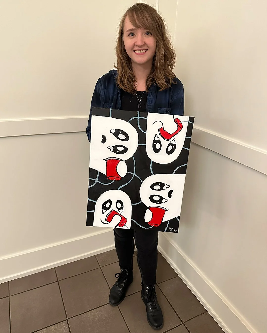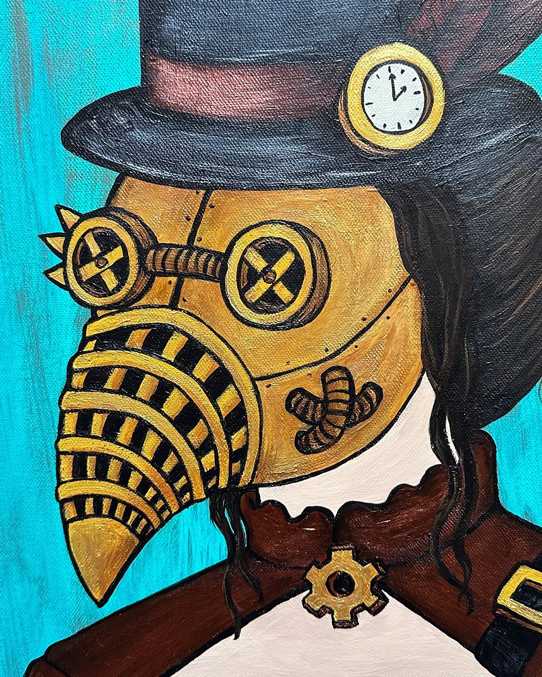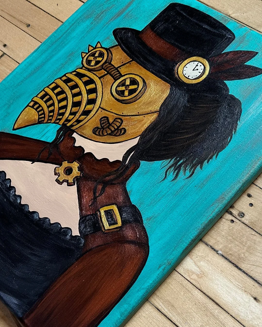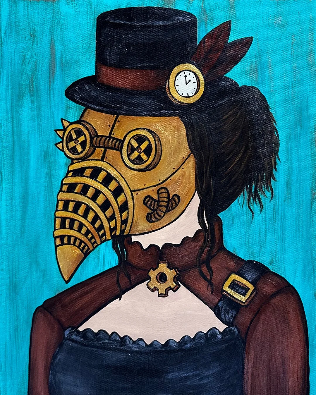 During the month of October in 2023, Cocoon Art Space hosted a Weird & Creepy group art show. This 14"x18" acrylic painting was featured in the show, a recreation from a previous ink drawing from 2020.