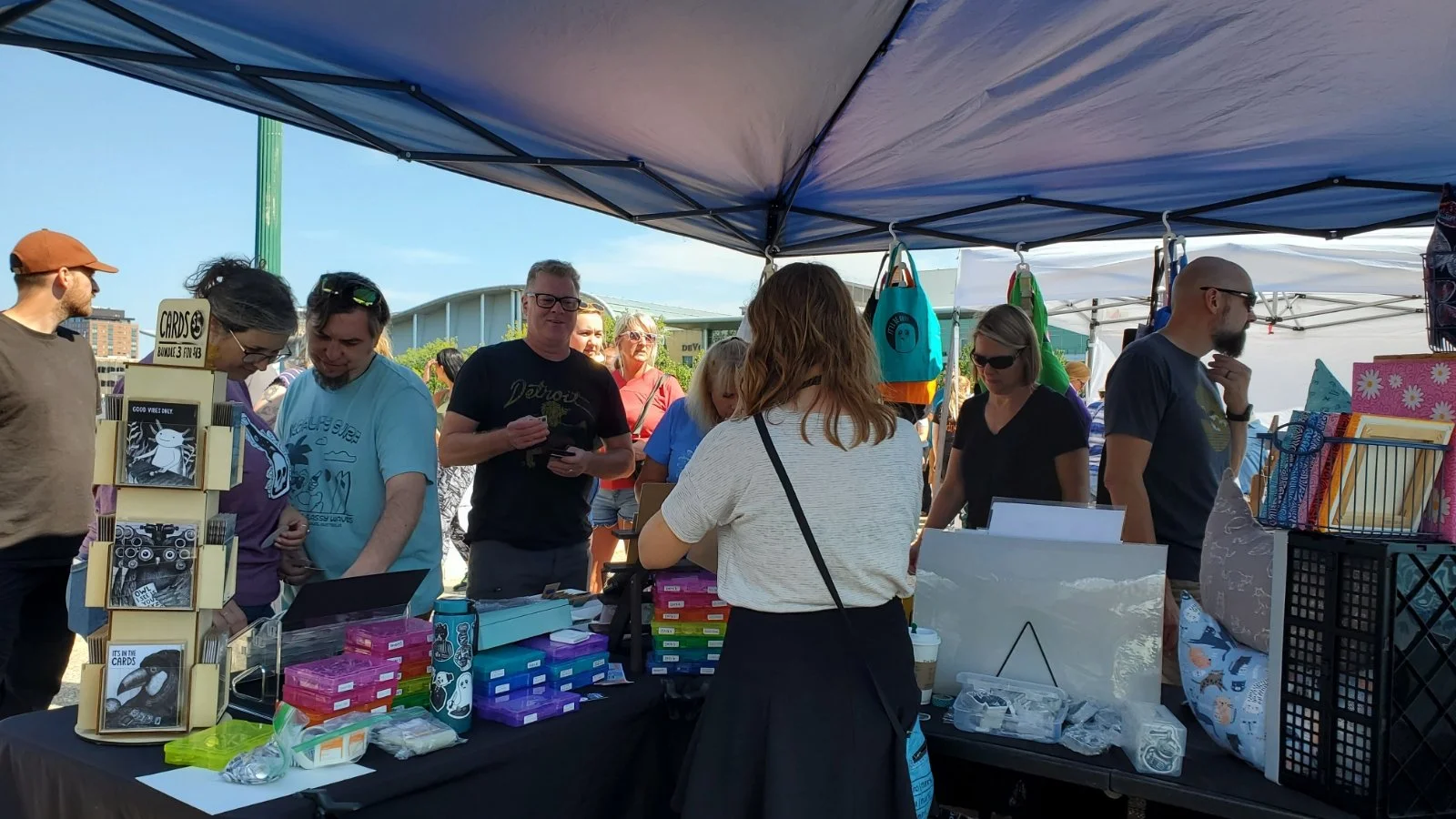 Art prints, stickers, decals, buttons, magnets, greeting cards, keychains, pins, temporary tattoos, bookmarks, aprons, tote bags, calendars, art books, paintings, handmade sketchbooks, painted pots, plushies, handmade catnip toys, cuddle pillows, and more to come!