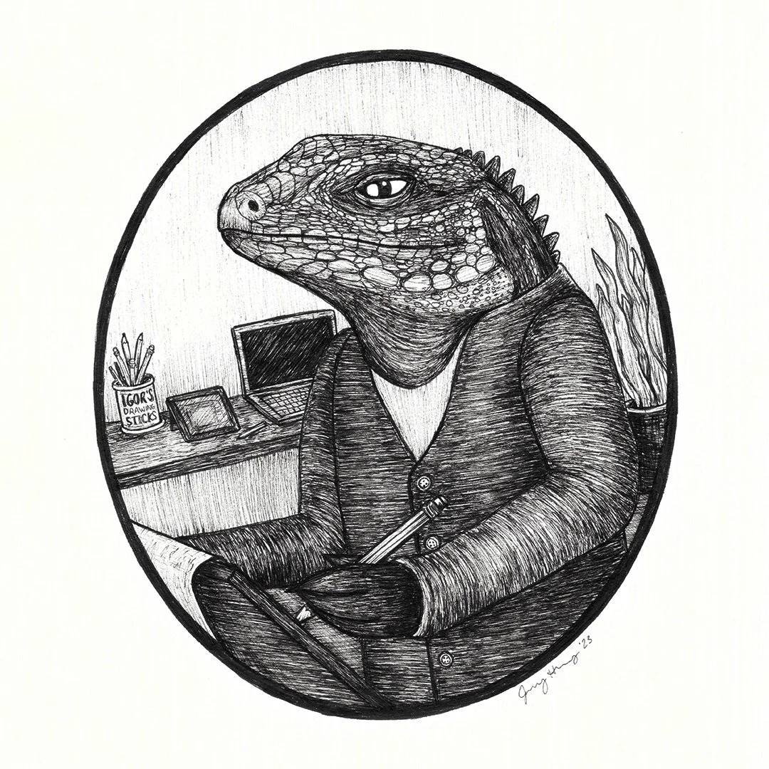 The Unspooky Alphabet is a collection of 26 original ink drawings that are based on alliterating letters of the alphabet. Taking inspiration from its predecessor that had a spooky theme around the characters, the unspooky version brings personalities to animals that otherwise do not have a voice. They can be seen as individuals that are relatable to the audience, who may be able picture themselves or their loved ones in the occupations of the animals. The alphabet is the backbone of any language, and even though this series was inspired by the English alphabet, it can be interpreted by other languages because the images are represented visually in a way that other cultures can also connect with.